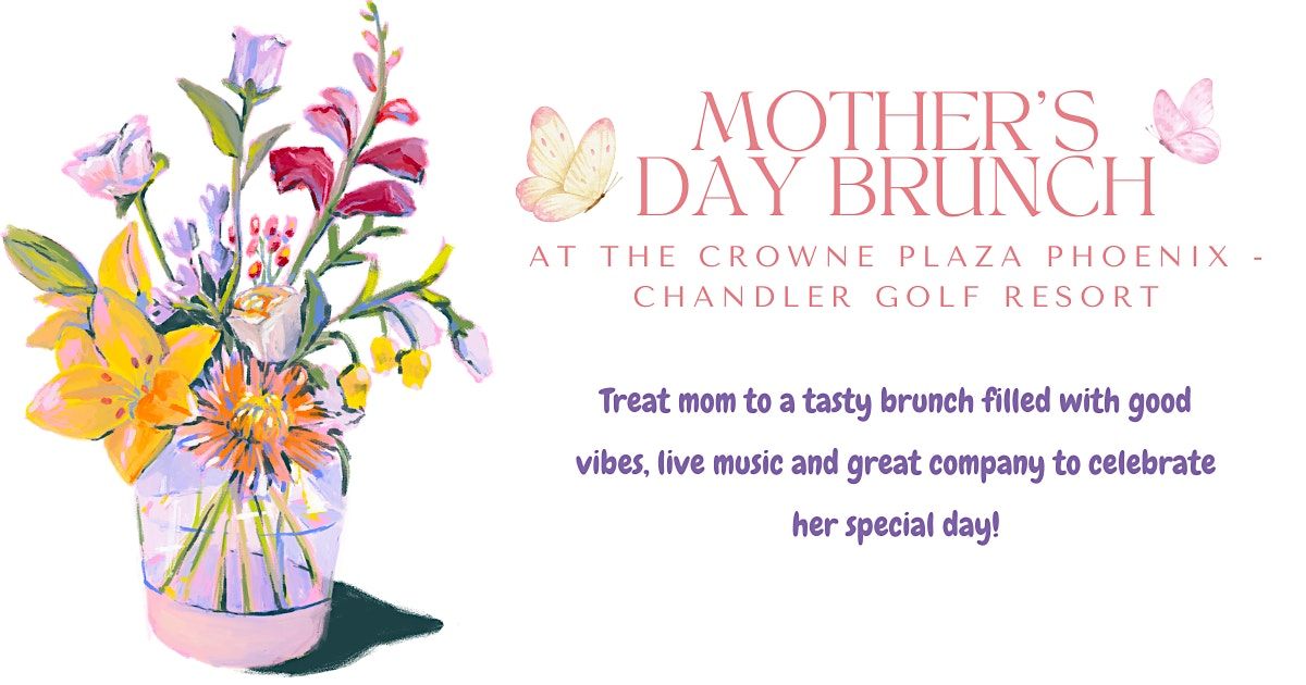 Join us for a relaxed and fun Mother's Day Brunch at the beautiful Crowne Plaza Phoenix - Chandler Golf Resort! It’s happening on May 10, 2026 with seatings at 10:00 AM, 11:00 AM, 12:00 PM and 1:00 PM (MST).