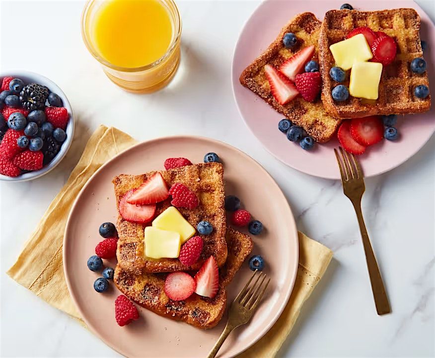 In this class, we’ll walk you through a menu that blends comfort food with a fresh, elevated twist. You’ll make crispy Cajun Shrimp & Grit Waffles with bold Southern flavor, golden French Toast Waffles that are perfect for any sweet tooth, and a silky Vanilla Crème Anglaise to tie it all together. To top it off, we’ll mix up a refreshing Blueberry Rosemary Smash that’s as pretty as it is delicious.