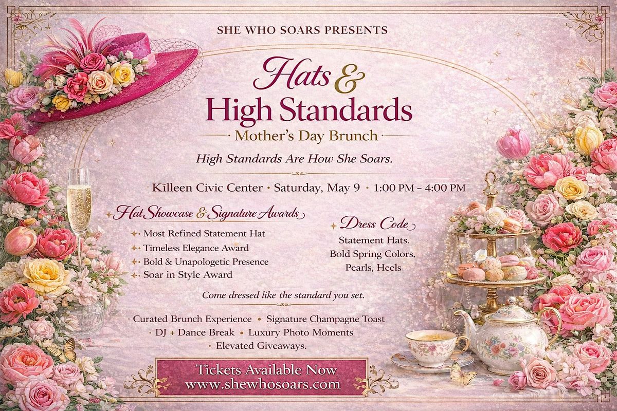 Join She Who Soars for an elegant and empowering Mother’s Day Brunch, Hats & High Standards, an afternoon designed to celebrate motherhood, confidence, and the standard she sets.