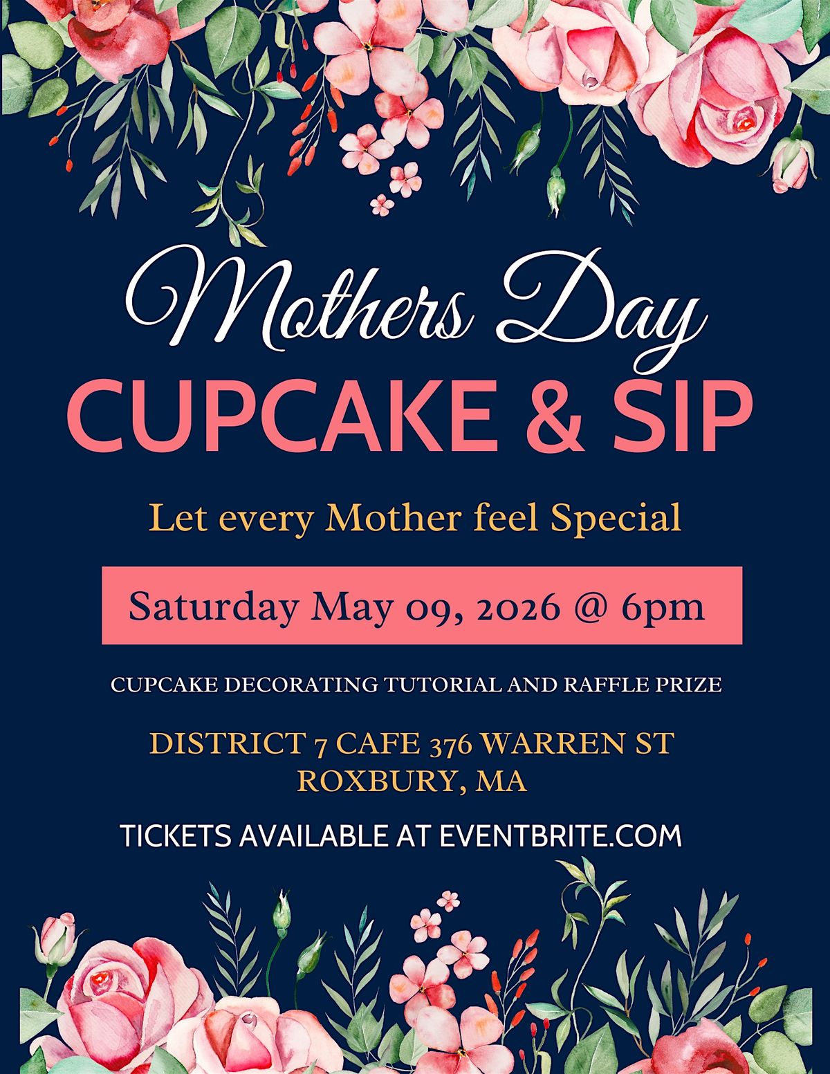 Celebrate Mother's Day with a fun and cozy in-person event! Enjoy delicious cupcakes while sipping on your favorite drinks. It’s the perfect way to treat mom (or yourself!) to a sweet and relaxing afternoon. Bring your friends, share some laughs, and make memories that’ll last. Don’t miss out on this tasty celebration – see you there!