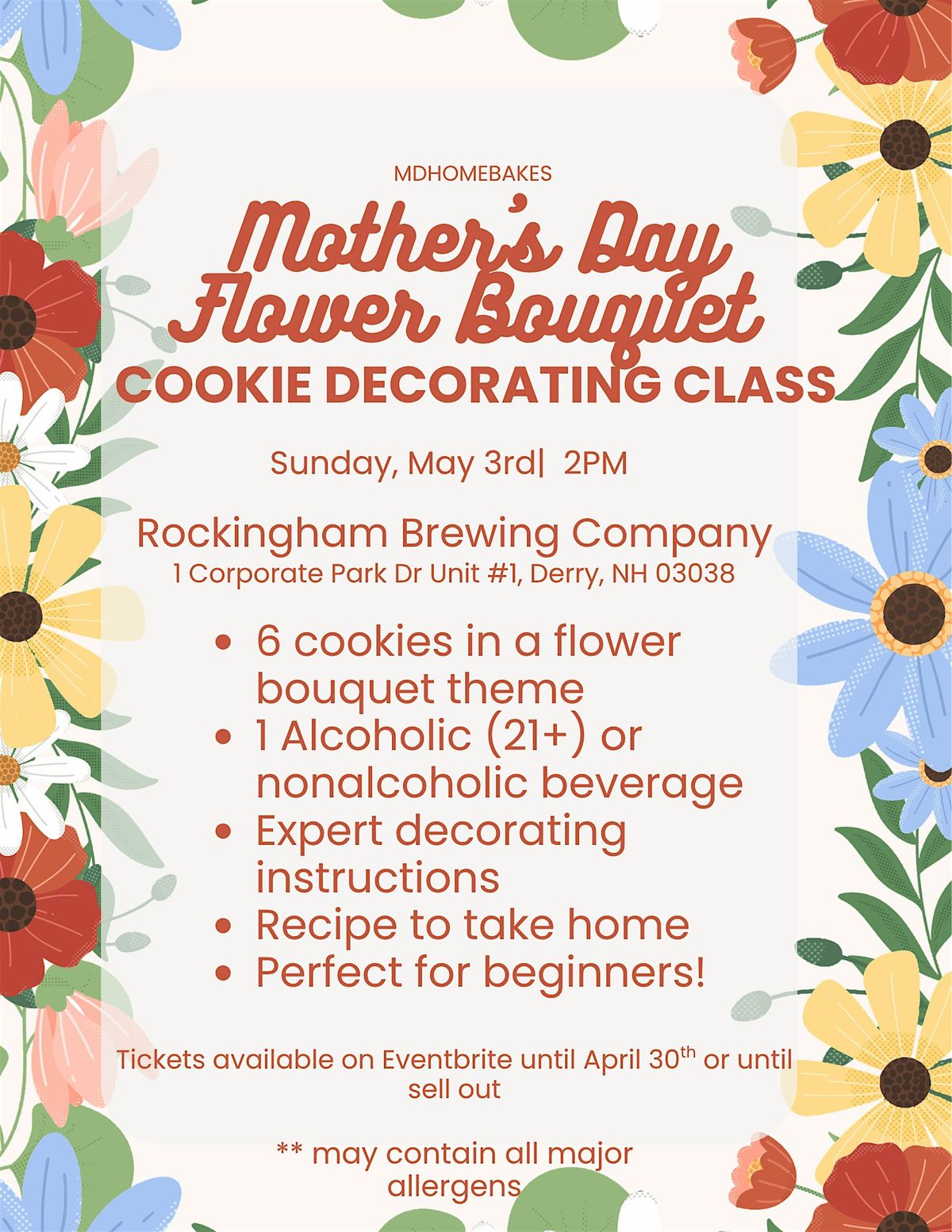 Join our Mother's Day Floral Bouquet Cookie Decorating Class and get hands-on with some sweet creativity! This fun, in-person event is perfect for making beautiful, floral-themed cookies that are sure to wow any mom. Whether you're a decorating pro or just starting out, you'll leave with tasty treats and a big smile. Don't miss out on this fun and crafty way to celebrate!