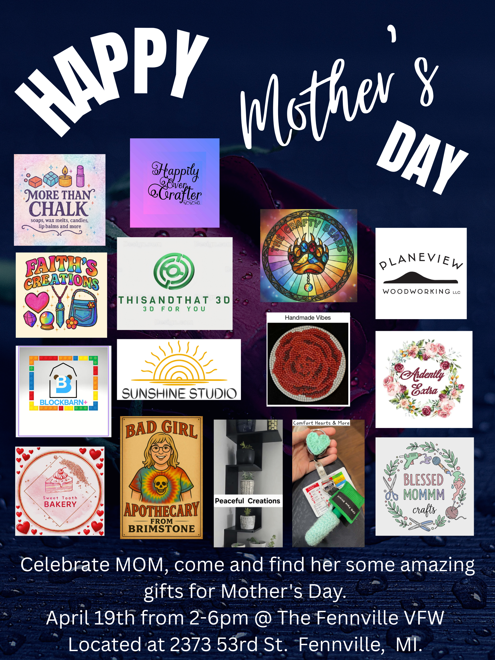 Celebrate the special bond with your mom at the enchanting Mother's Day Gift Fair organized by Jeni Burnett. Join us on April 19, 2026, at 2:00 PM at The Fennville VFW for a heartwarming day filled with love, creativity, and memorable gifts that will make your mom feel truly cherished.