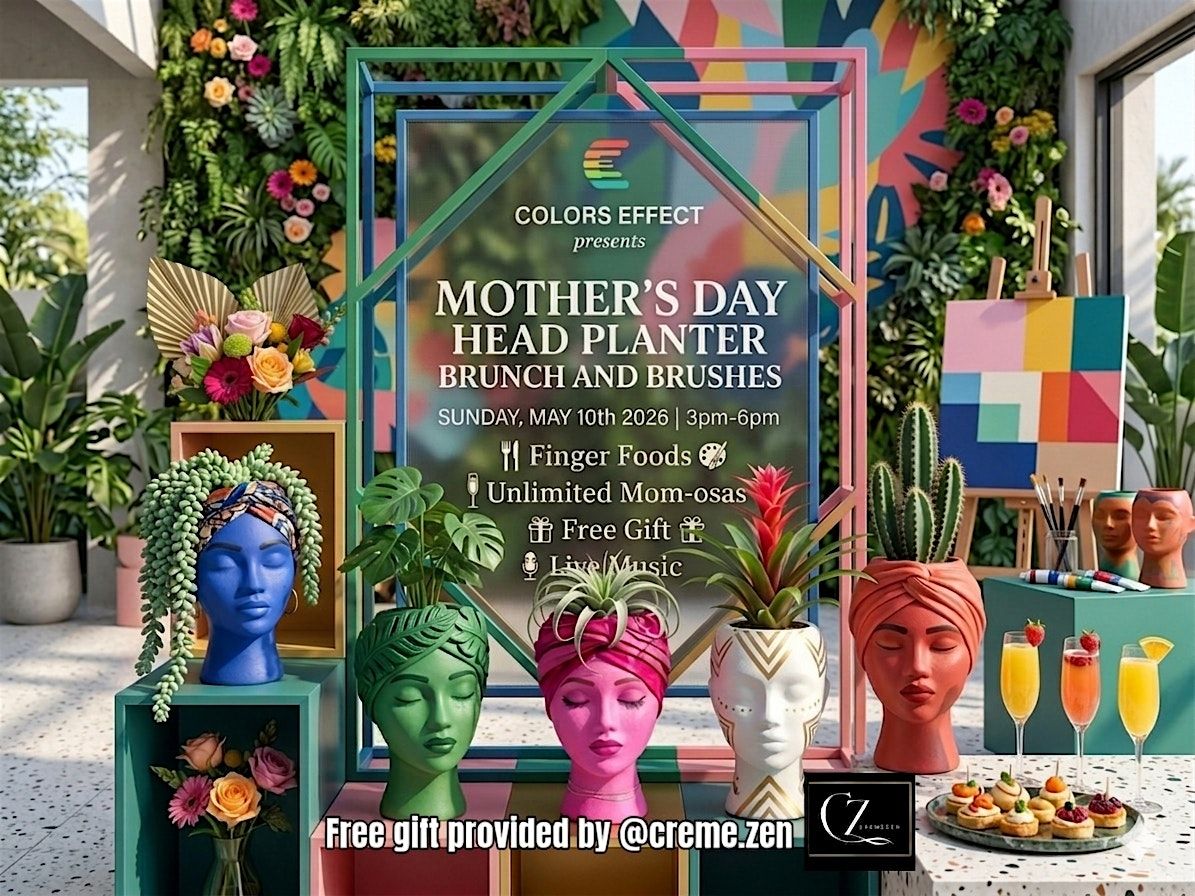 This is a unique special event to celebrate the Mom in your life. The event includes painting and designing your own planter head, enjoying tasty brunch, unlimited Mom-osas, live music and a free gift!