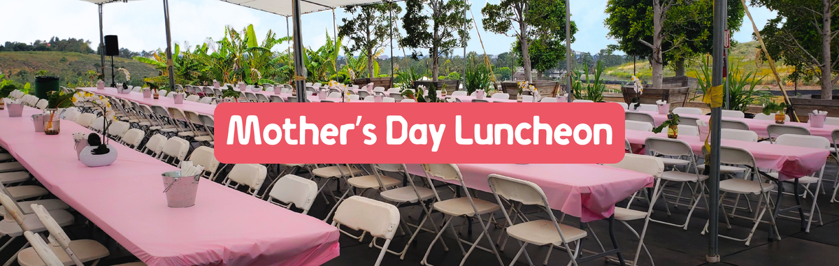Celebrate Mom at Tanaka Farms' Hilltop Luncheon! Enjoy scenic panoramic views of the entire farm while indulging in an all-you-can-eat buffet featuring farm-fresh vegetables, refreshing salads, delicious entree options for all ages, plus an assortment of beverages and desserts. A tractor ride brings you up to the beautiful hilltop luncheon area, where families can relax or enjoy lawn games together. Seating is limited and reservations are required. Note: Your booking time is your tractor departure time — arrive at check-in within 15 minutes of your selected time. This special Mother's Day event fills quickly — book early to secure your spot!
