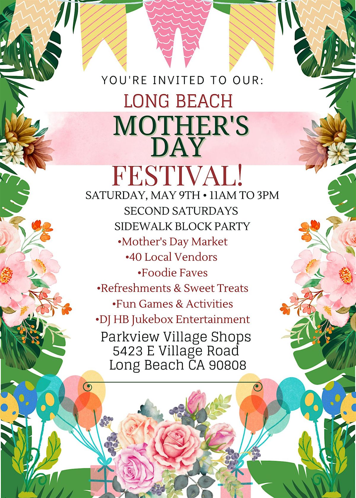 💐Mothers Day Market 🛍️40 Local Vendors 🥐Foodie Faves🍹Free Tiki Punch & Sweet Treats 🫧Bubbles & Games 🧑🏼🎤DJ/Karaoke