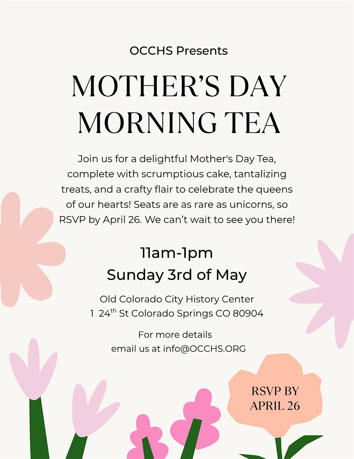 Join us for a delightful Mothers Day Tea, complete with scrumptious cake, tantalizing treats, and a crafty flair to celebrate the queens of our hearts! Seats are as rare as unicorns, so RSVP by April 26. We can't wait to see you there!
