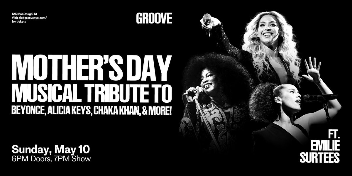 Treat your mom, your daughter, your wife, or yourself to our Musical Tribute to The Ladies Who Have It All: beautiful families & a music career that spans the decades! Beyonce, Alicia Keys, & Chaka Khan have released hit after musical hit, that we can still dance, sing, & clap along with. So get to Groove on Mother's Day, have a scrumptious meal & drinks, while listening to Emilie Surtees & her energetic band perform some of their BIGGEST HITS!