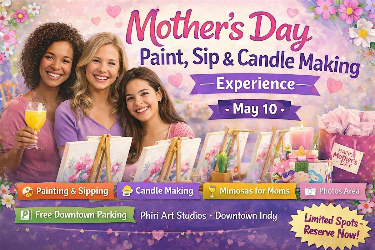 Join us at Phiri Art Studios in Downtown Indianapolis for a special Mother’s Day Paint, Sip & Candle Making Experience — designed to celebrate moms, grandmothers, and the incredible women in our lives.