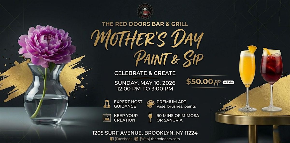 Join us for a fun and relaxed Mother's Day celebration at The Red Doors! Grab a glass of mimosa or sangria and get ready to paint some beautiful memories together. Whether you're a pro or just want to have a good time, this is the perfect way to unwind and celebrate. We'll meet on May 12, 2026 at 12:00 PM (Eastern Time). Can't wait to see you there!