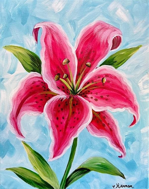 Skip the crowded brunch and do something you’ll actually enjoy this Mother’s Day. Join us for a relaxed paint and sip where we’ll be creating a beautiful stargazer flower. Think soft petals, a little color blending, and a finished piece you’ll actually want to hang up.