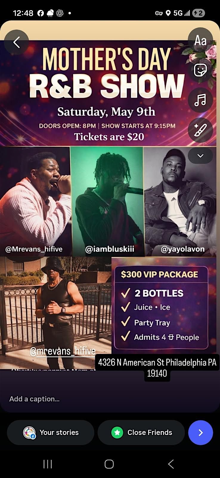 Get ready to celebrate Mother's Day in style with an amazing R&B show just for the ladies! Join us for a fun, lively evening filled with smooth vibes, soulful tunes, and good company. This in-person event is all about honoring the amazing women and moms out there. Don’t miss out on a night of great music and unforgettable moments!