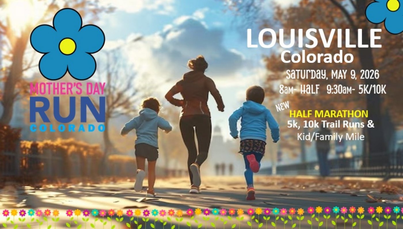 Colorado's Favorite Mothers Day Race and Expo. A family fun, trail Half Marathon, 10k and 5k...then follwed by a KID MILE, to run with the family. Large Expo, cool gifts-- Runners receive: a Larhge camping Water Bottle, BUFF, Medallion and then Continental Breakfast.