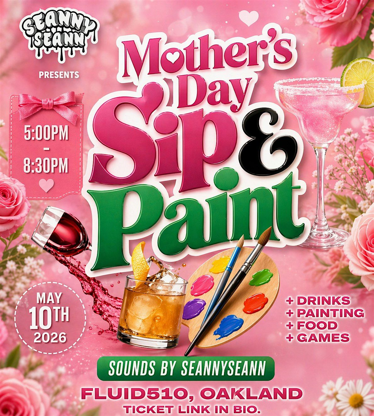 Grab your paintbrush and a drink for a chill day of creativity and good vibes celebrating moms!