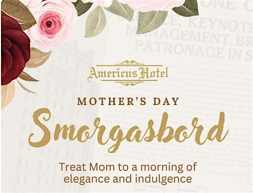 Join us for a fun and delicious Mother's Day Smorgasboard at the Historic Americus Hotel! Celebrate with a variety of tasty treats and good vibes. Bring your mom and enjoy a relaxed, tasty morning together.