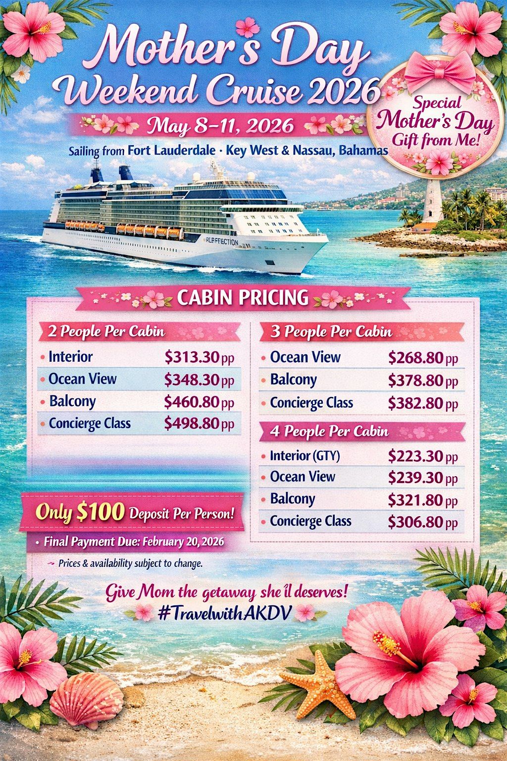Looking for a super special way to honor Mom? Join us for an unforgettable MOTHERS DAY WEEKEND AT SEA! This in-person event is packed with fun, relaxation, and lots of love. Whether you're sailing, dining, or just soaking in the vibes, it's the perfect way to say thanks to the amazing moms out there. Don't miss out on making memories that'll last a lifetime!