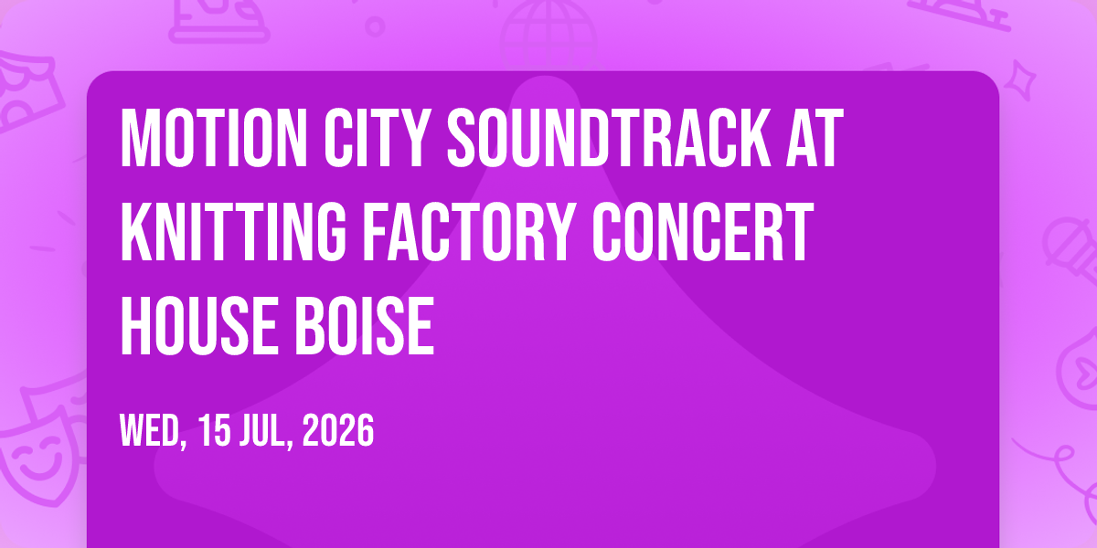 🎉 Prepare to be amazed at Motion City Soundtrack at Knitting Factory Concert House Boise, the most anticipated gathering of the season! 🌟 Set against the stunning backdrop of Knitting Factory Concert House Boise in vibrant Boise, ID, this event promises to redefine your expectations. 📅 Mark your calendars for July 15th, 2026 at 08:00 PM and get ready to immerse yourself in an atmosphere of wonder and excitement. ✨ From the moment you arrive, you'll be transported into a world where memories are made and stories come alive. They have crafted an experience that perfectly harmonizes entertainment, innovation, and community spirit. 🌈 Join us as we create moments that will be discussed for years!