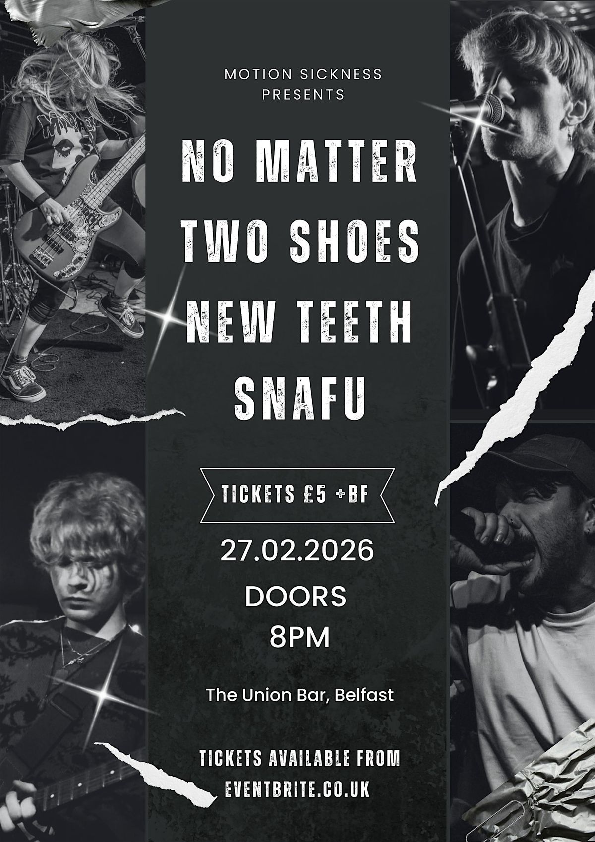 Motion Sickness presents a showcase of some of the best upcoming bands from across Ireland, bringing raw energy, big choruses and honest emotion straight to the heart of Belfast. This is about celebrating the underground scene and giving it the platform it deserves.