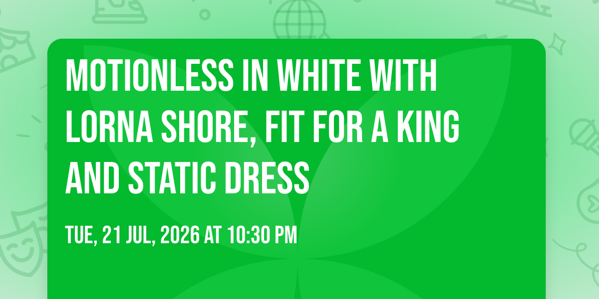 📍 Location: 35.3272, -80.7123🎉 Welcome to Motionless In White with Lorna Shore, Fit For A King and Static Dress, where the impossible becomes possible and dreams take flight! 🏛️ Join us at Truliant Amphitheater in the heart of Charlotte, NC for an event that will redefine your expectations. 📅 On July 21st, 2026 at 10:30 PM, witness the transformation of space and time into something truly magical. ✨ It's a curated experience combining the best of innovation, entertainment, and community spirit, creating moments that will be remembered for years to come. Whether you're a first-time visitor or a seasoned enthusiast, prepare to be amazed. 🎊 Book now to ensure your place in this unforgettable experience!