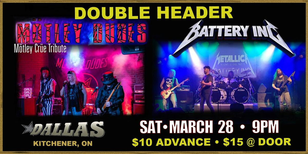 Motley Dudes (Motley Crue) & Battery Inc (Metallica) bands performing at Dallas on March 28!