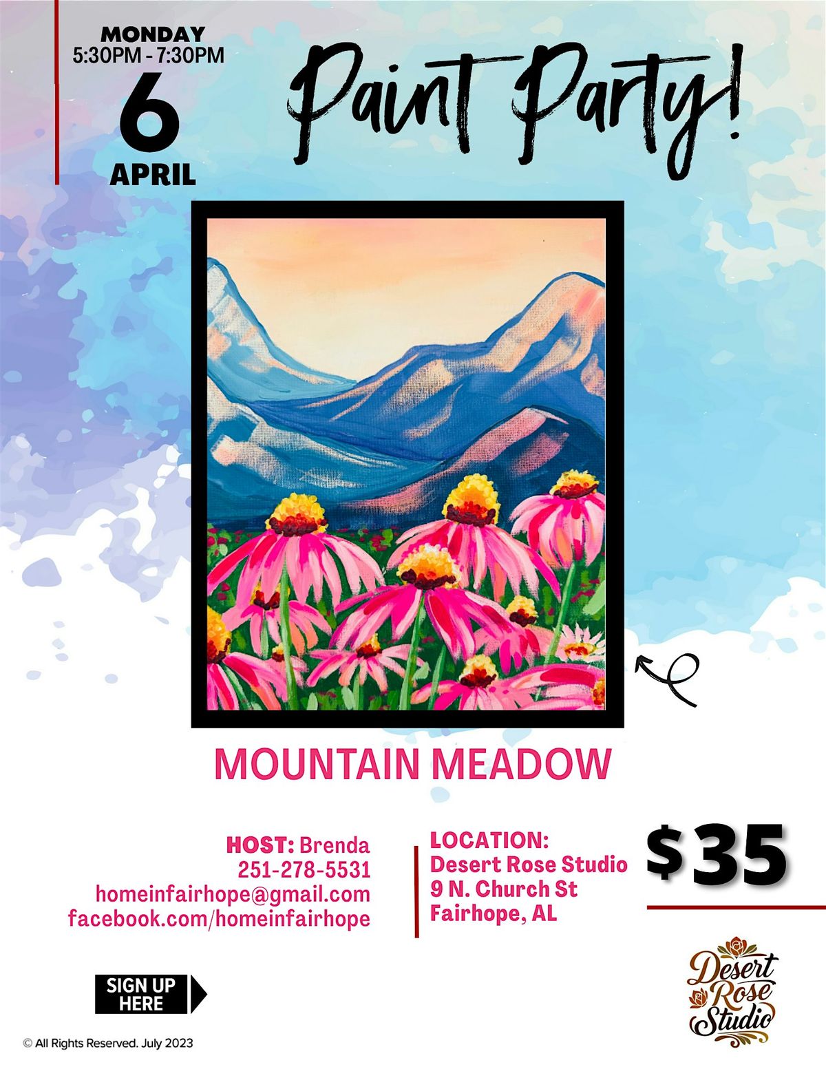 Get ready for a fun in-person evening where creativity meets relaxation! Join us at the Mountain Meadow for a laid-back paint and sip session. Bring your friends or come solo to enjoy some good vibes, cool drinks, and your masterpiece in the making. Whether you're a pro or a beginner, this party is all about having fun and unleashing your inner artist. Don’t miss out on a night full of color and laughs! BYOB