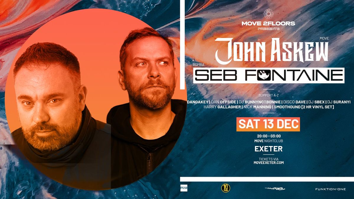 Move 2Floors Presents: John Askew + Seb FontaineSaturday 13th December | 8PM – 3AMWe’re wrapping up 2025 with something seriously special.After a sold-out night with Ferry Corsten and Alister Whitehead earlier this year, we’re back for our final 2025 party, and we’re going out BIG.
