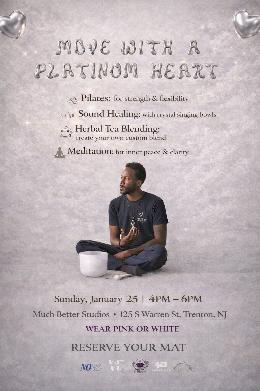 Holding space for an elevated wellness experience featuring a soft and gentle mat pilates flow, heart opening sound bath meditation, and an herbal tea making ceremony.