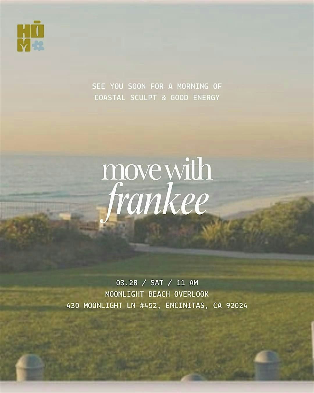 Move With Frankee is a 45‑minute coastal mat Pilates class designed to help you slow down, strengthen with intention, and feel good in your body. After class, stay and hang out by the ocean with community—plus a curated selection of local vendors offering Pilates socks, jewelry, totes, and wellness apparel. Coffee + treats to come.
