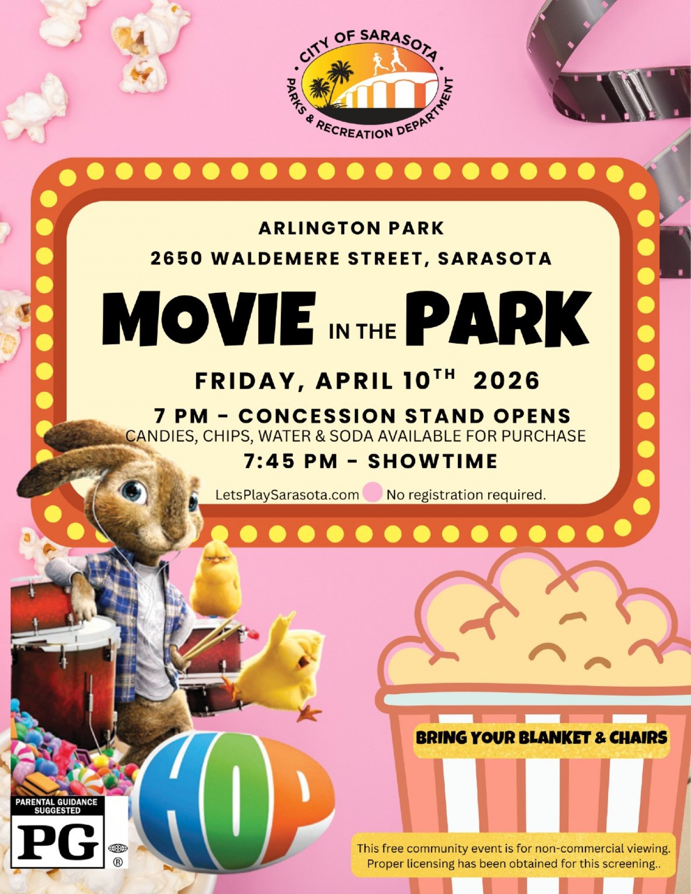 Don’t forget your blankets and get cozy for this year’s featured film—Hop (2011)!