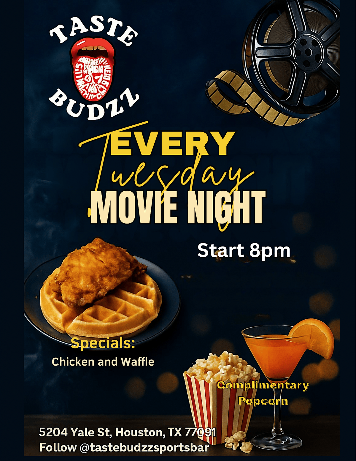 Welcome to Movie night! Grab your popcorn and join us at Taste budzzz sport bar and grill for a cozy evening of film fun on January 27, 2026 at 8:00 PM (Central Time). It's the perfect way to unwind and enjoy some cinematic magic with friends. See you there!