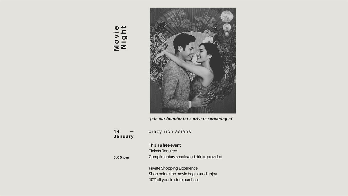 Join our founder for a free screening of Crazy Rich Asians at Élevée. An evening of film, new connections, and a private shopping experience—complete with a little something special for our guests.