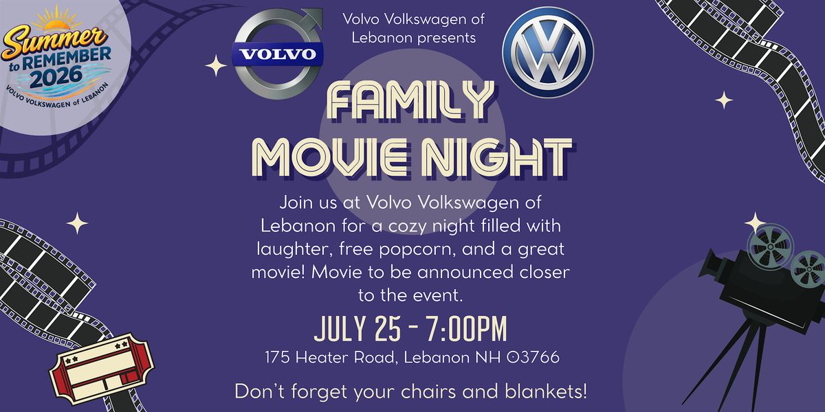 Chill with us at Movie Night at Volvo Volkswagen of Lebanon for cars, snacks, and big-screen vibes!About this Event