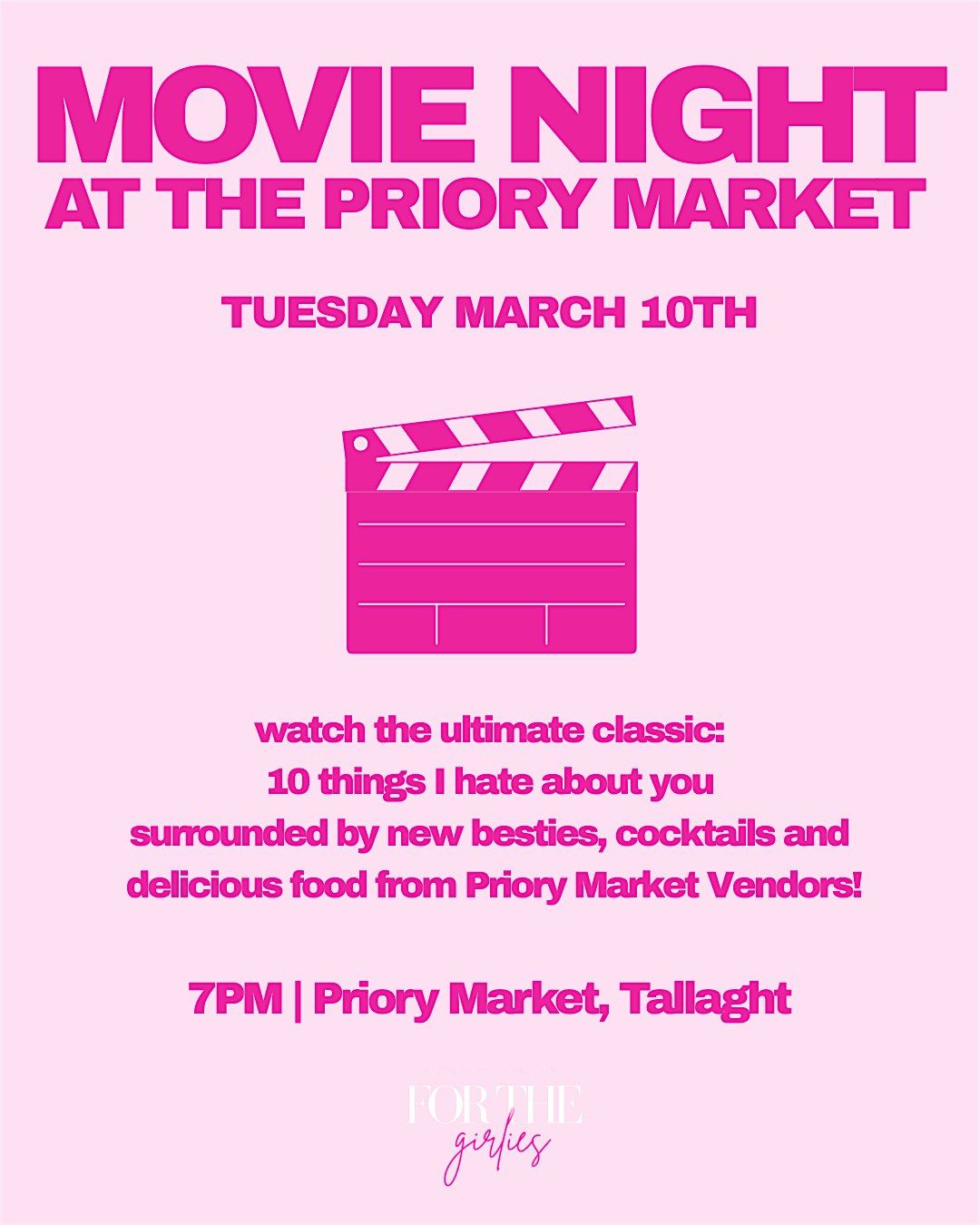 We will be watching an ultimate classic - 10 things I hate about you! Come for girlie vibes, chats, cocktails and great food. Be prepared to make new besties too <3