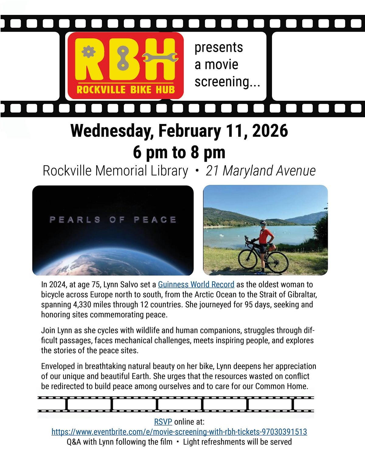 Join us for a screening of Pearls of Peace and journey with a local cyclist who is the oldest woman to bicycle across Europe.
