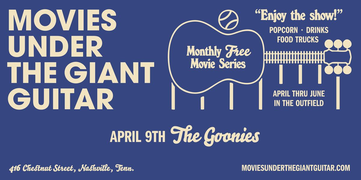 Join the season’s first Movies Under the Giant Guitar on Thursday, April 9 featuring The Goonies in The Outfield, the community green space beneath the iconic guitar-shaped scoreboard.