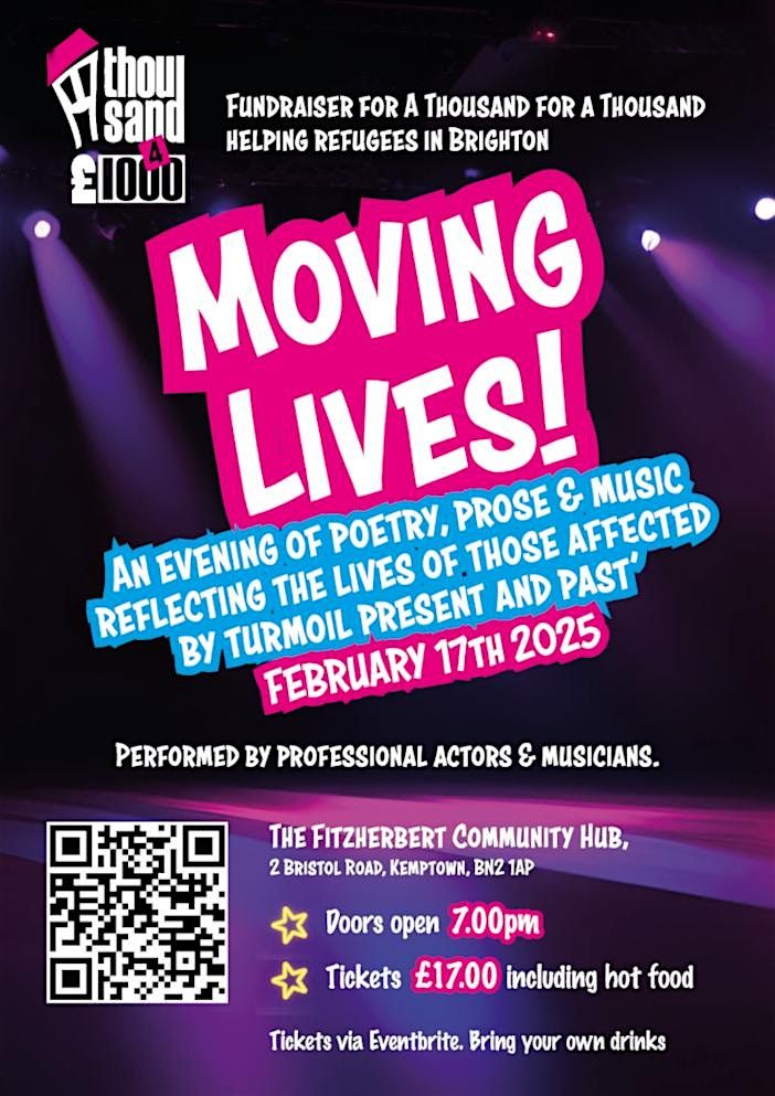Join us for an evening of poetry and prose performed by professional actors, reflecting the lives of those affected by turmoil, present and past. Beautiful acoustic music by Brendan and Anjuli.