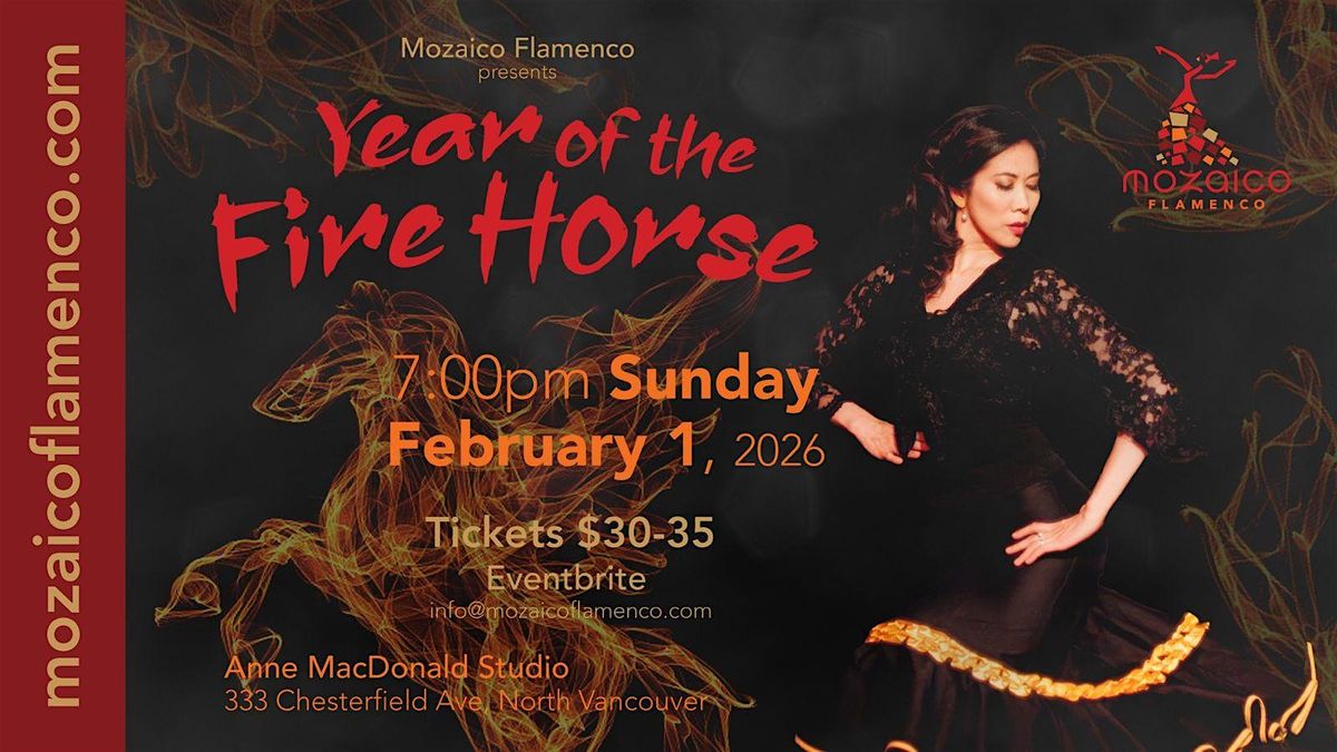 Get ready for an electrifying night with Mozaico Flamenco as they bring the amazing "Year of the Fire Horse" with fiery flamenco! The Fire Horse in the Chinese Zodiac is known for being wild, passionate, charismatic, courageous, with a thirst for action, adventure, innovation and is highly volatile. Sounds exciting just like Flamenco!