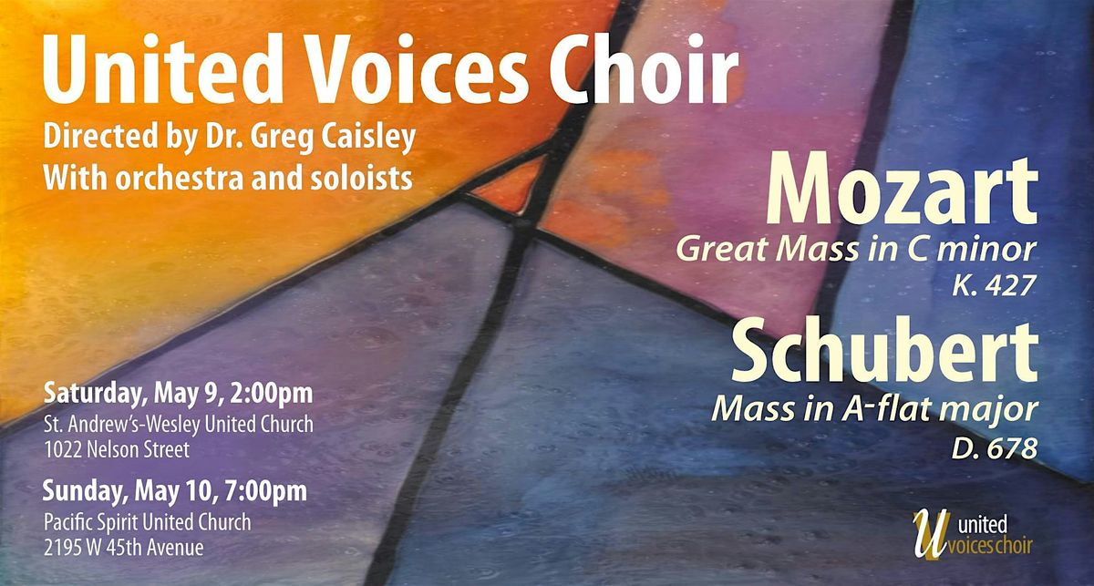United Voices Choir, with professional orchestra and soloists, under the direction of Dr. Greg Caisley, presents two extraordinary choral masterpieces by visionary composers.
