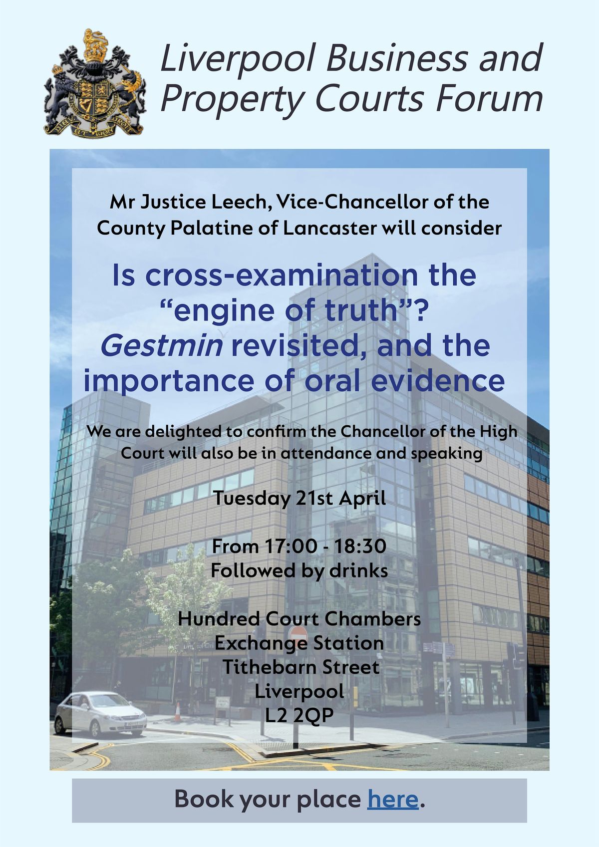 Liverpool BPC are delighted to invite you to join them on Tuesday 21 April 2026 from 17:00 at Hundred Court Chambers, Exchange Station, Tithebarn Street, L2 2QP.
