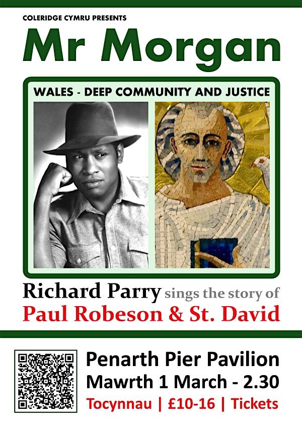 Wales - deep communty and jstice. Award winning performer Richard Parry sings the remarkabe Welsh story of St David and Paul Robeson.