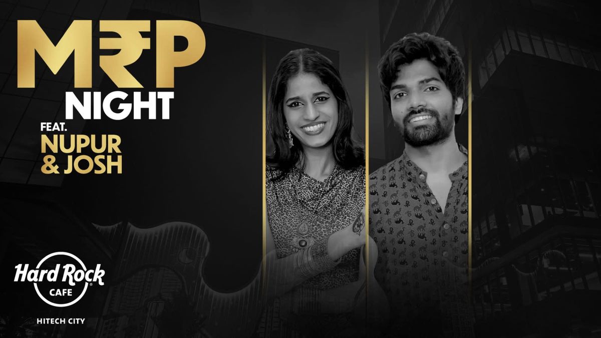 MRP Night Ft. Nupur & JoshStripped-Down Sounds. Pure Musical Vibes.Get ready for a soulful unplugged session with the talented duo Nupur and Josh, bringing you a heartfelt blend of acoustic covers and crowd favourites - all under the warm, laid-back vibe of MRP Night.Let their melodic vocals and raw acoustic energy set the perfect mood for your evening, while you sip on your favourite bottles at MRP prices.