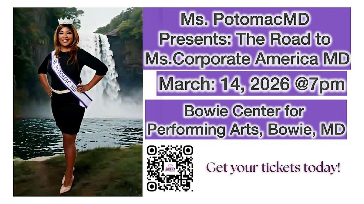 Join us on March 14, 2026 at 7:00 p.m. for the Ms. Corporate America Maryland Competition at the stunning Bowie Center for Performing Arts in Bowie, Maryland.