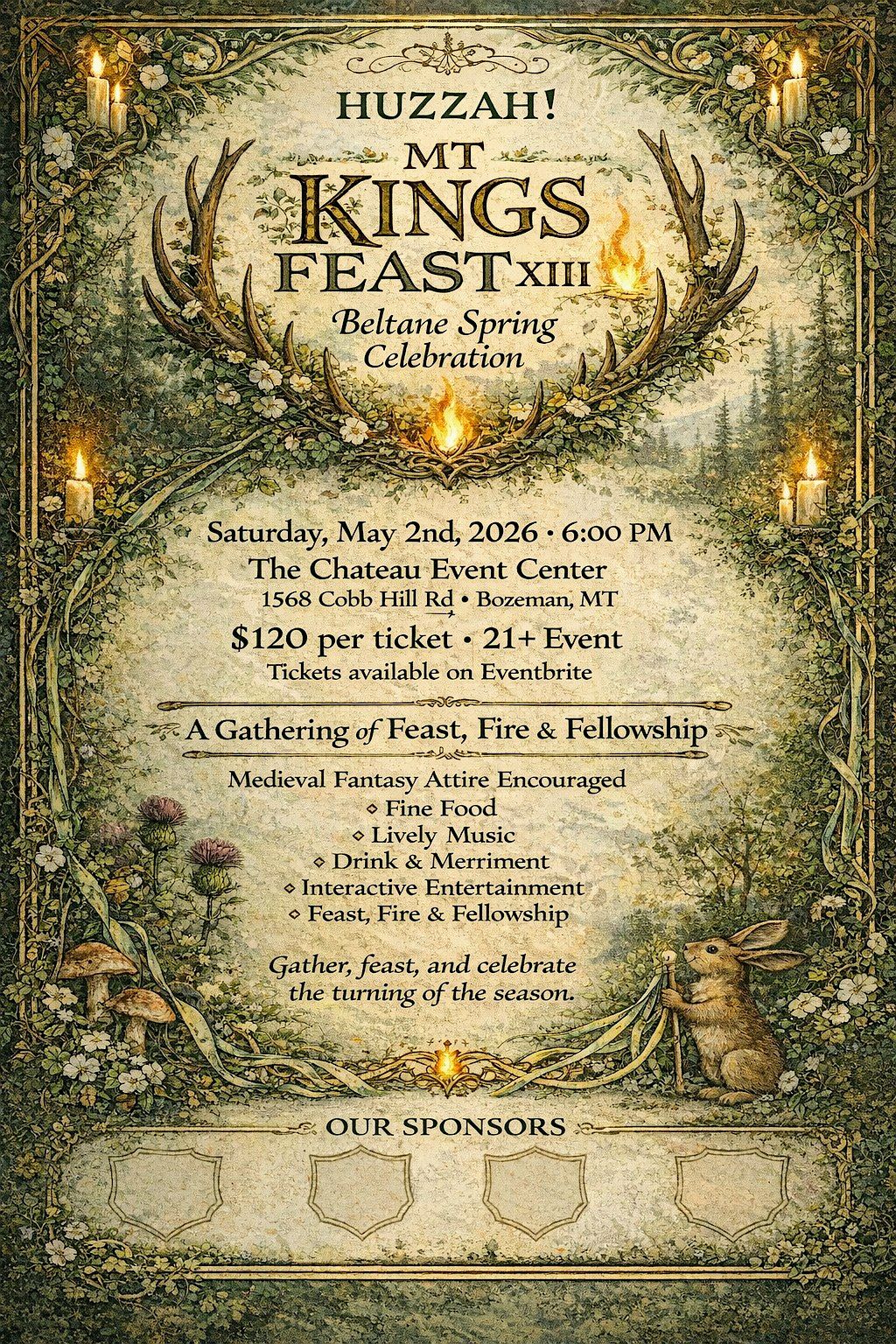 Legendary Kings Feast Beltain Spring Celebration!! Fantastic local food & drink, live music, interactive games, amazing camaraderie!About this Event
