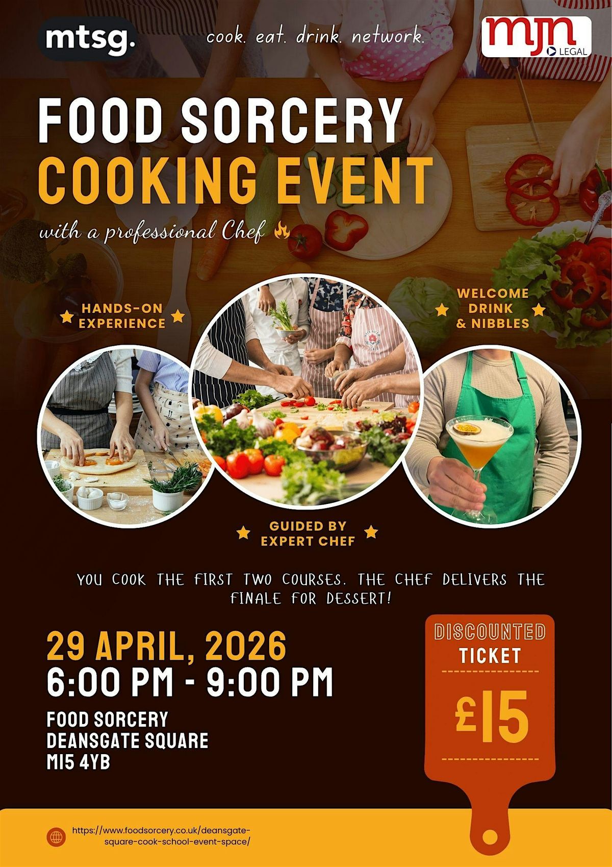 Join us for an exclusive hands‑on cooking experience at Food Sorcery Cooking School, Deansgate! Hosted by MTSG and proudly sponsored by MJN Legal, this is an evening you won’t want to miss.