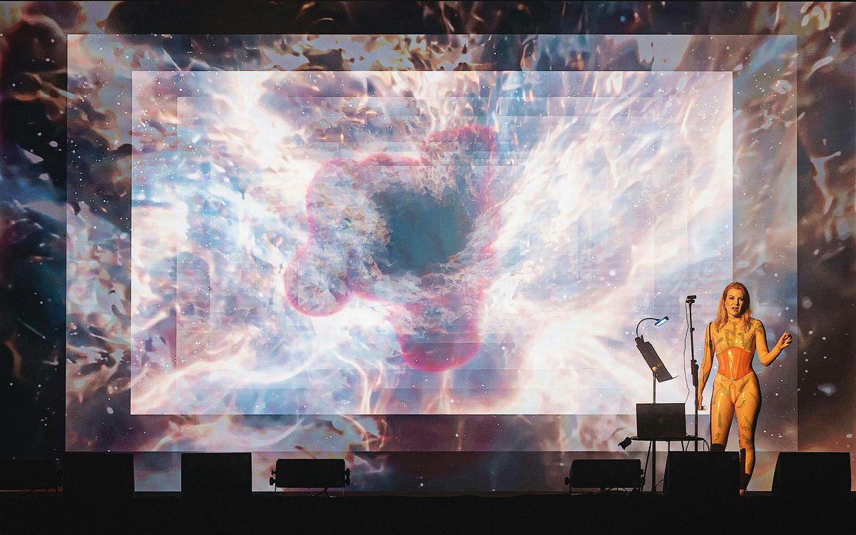 The evening program also includes the controversial live performance Eat My Multiverse by English artist Libby Heaney. Trained as a quantum scientist, she chose art, becoming one of the first to experiment with quantum processes as an artistic medium. The current MU exhibition Explorations of Uncertainty, artists' visions on quantum also features her most recent work, Nibble my Multiverse, in which contemporary art, science, technology and embodied experiences come together.