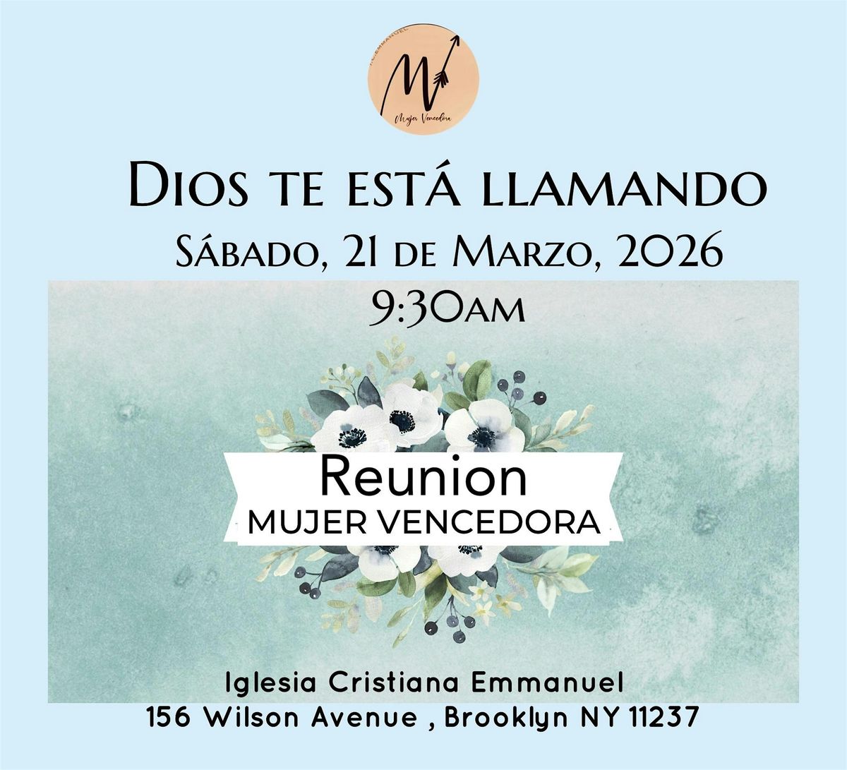¡Ven a nuestro evento Mujer Vencedora y conestá con mujeres que aman a Dios .Será una mañana llena de inspiración, crecimiento y espiritual . No te pierdas la oportunidad de escuchar la Palabra De Dios y experimentar Su poder libertador. Te esperamos para celebrar juntas el inmensurable amor de Dios.