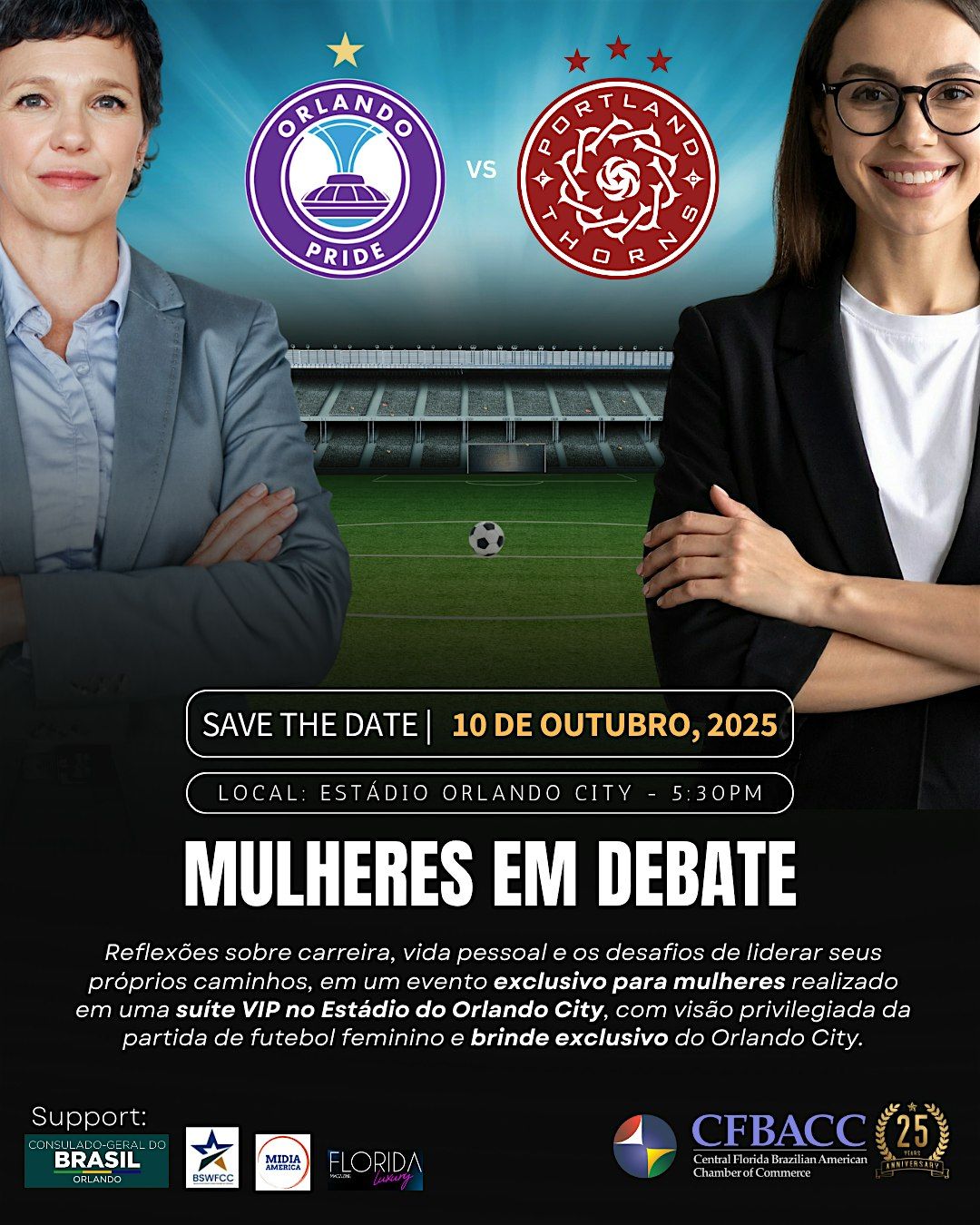 Reflexões sobre carreira, vida pessoal e os desafios de liderar seus próprios caminhos, em um evento exclusivo para mulheres realizado em uma suíte VIP no Estádio do Orlando City, com visão privilegiada da partida de futebol feminino e brinde exclusivo do Orlando City.