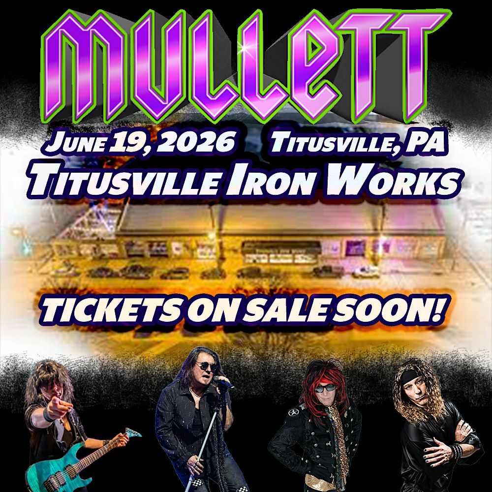 Get ready for a night of awesome 80's hits and good vibes with MULLETT live at Titusville Ironworks! Join us on June 19, 2026 at 6:00 PM (Eastern Time) for an unforgettable throwback party. Whether you're an 80's fan or just love great music, this event is for you. Bring your friends and let's make some memories!