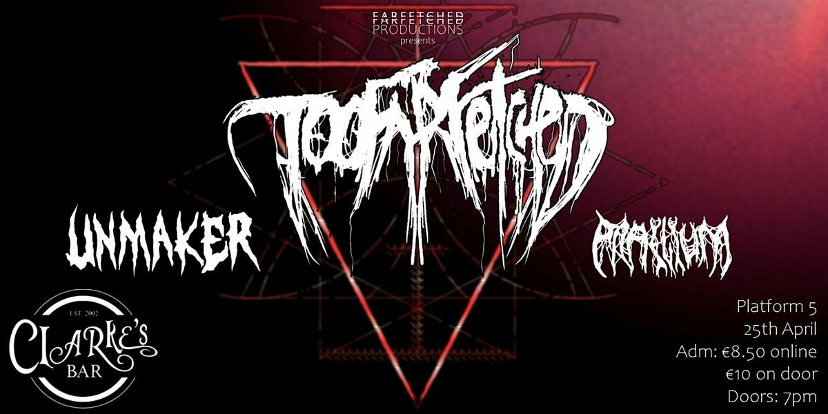 Toofarfetched return to their home town along with Dublin’s Unmaker and Limericks Praelium for a night of heavy metal.About this Event