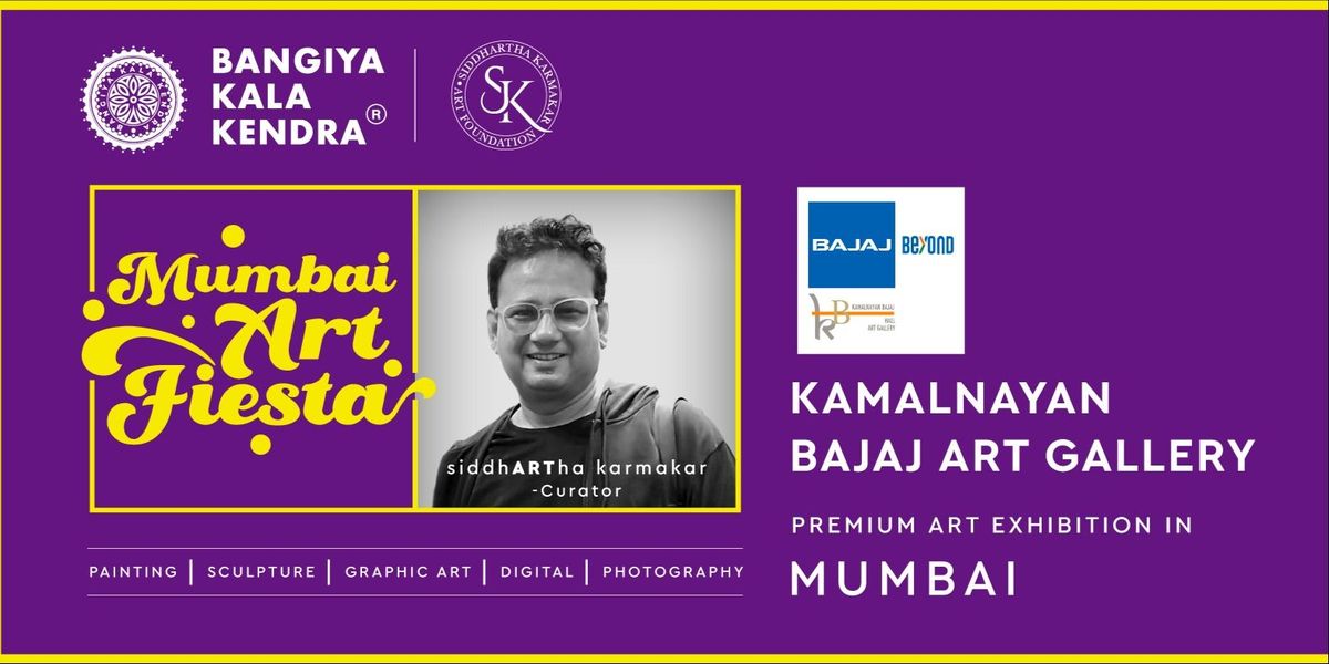 Mumbai Art Fiesta 2026 is a 6-day celebration of Indian creativity, organised by Bangiya Kala Kendra and curated by the Siddhartha Karmakar Art Foundation. The exhibition will be held at the prestigious Kamalnayan Bajaj Art Gallery, Nariman Point, Mumbai.