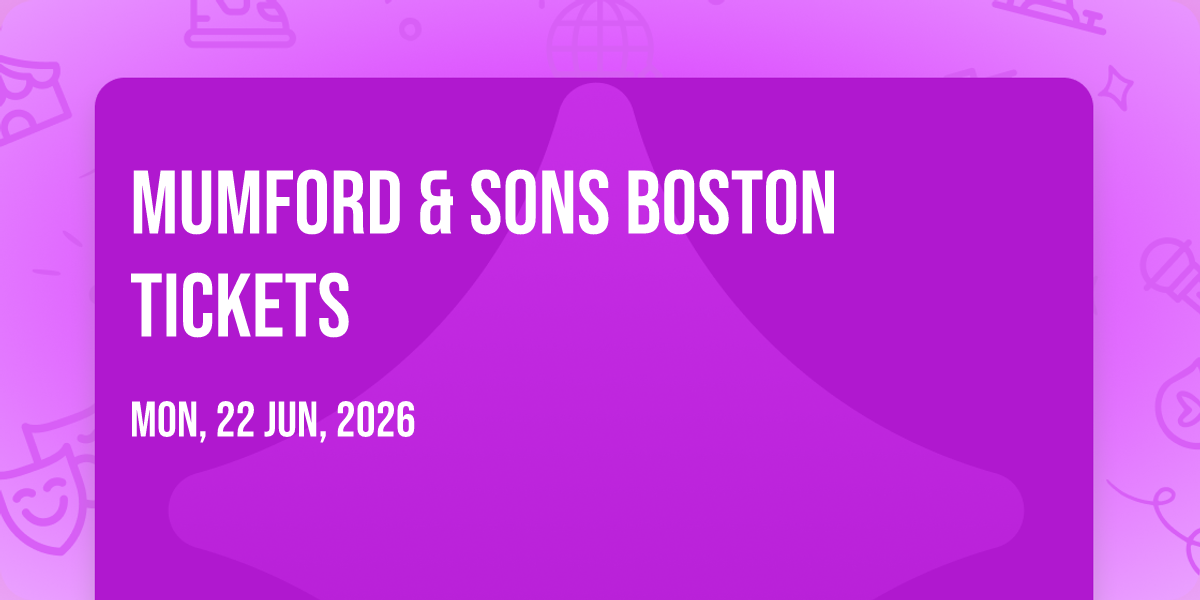 Mumford & Sons at Fenway Park✨ Enter a world of endless possibilities at Mumford & Sons Boston Tickets, where every moment tells a story! 🏛️ The stunning Fenway Park in vibrant Boston, MA transforms into a realm of wonder on June 22nd, 2026 at 06:00 PM. 🌟 They have crafted an experience that goes beyond the ordinary, combining elements of surprise, delight, and pure entertainment. Every detail has been thoughtfully considered to ensure your journey with us is nothing short of extraordinary. 🎯 Join fellow adventure seekers and memory makers in this celebration of imagination and innovation. 🎟️ Secure your spot with tickets at 86.78 EUR. 🎊 Reserve your spot today and be part of something truly special!